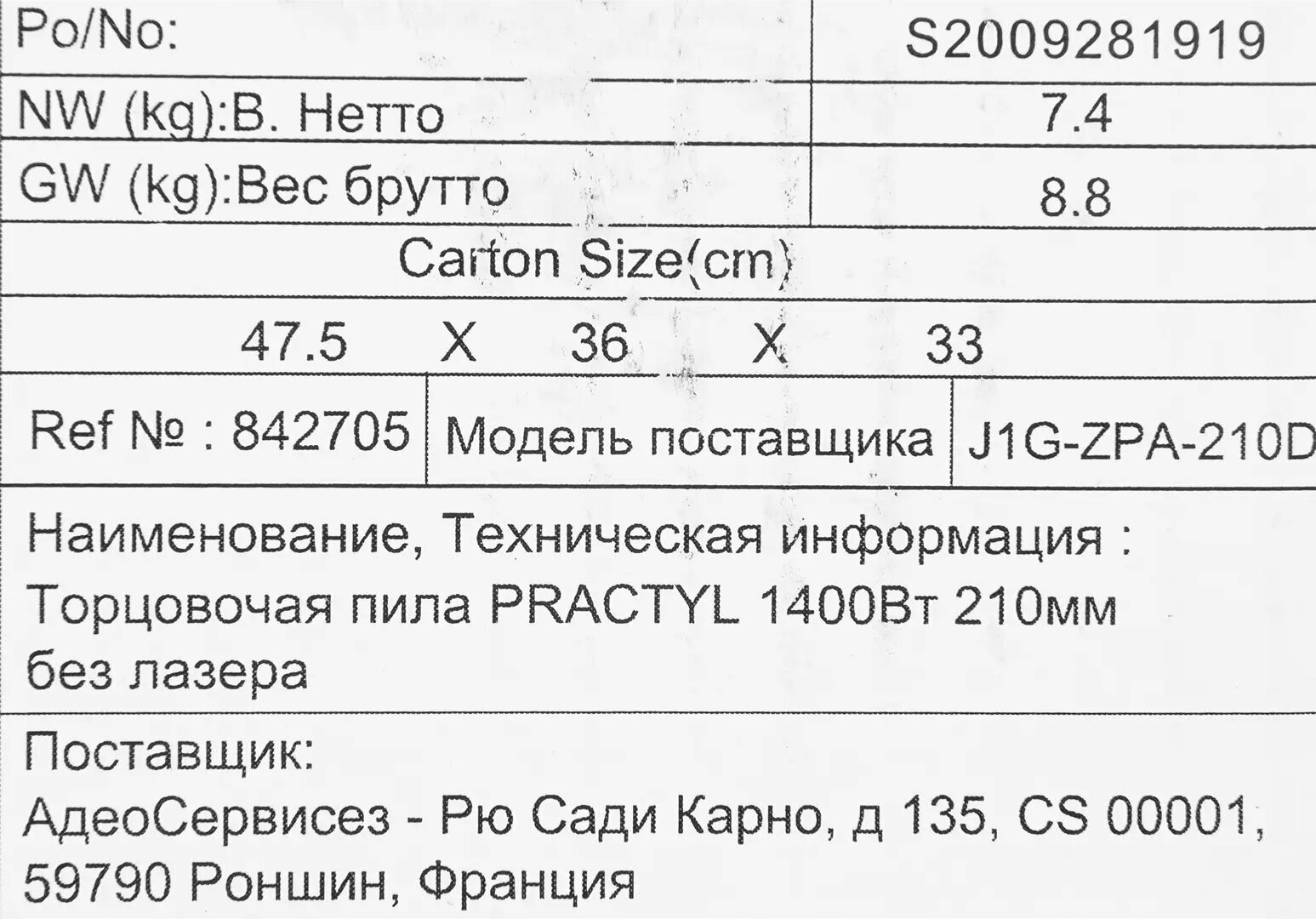 Купить Пила торцовочная Practyl J1G-ZPA-210D, 1400 Вт, 210 мм