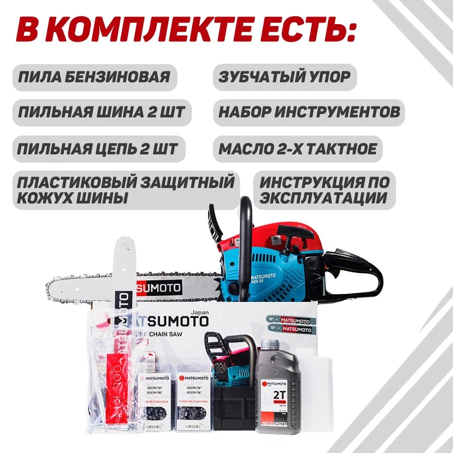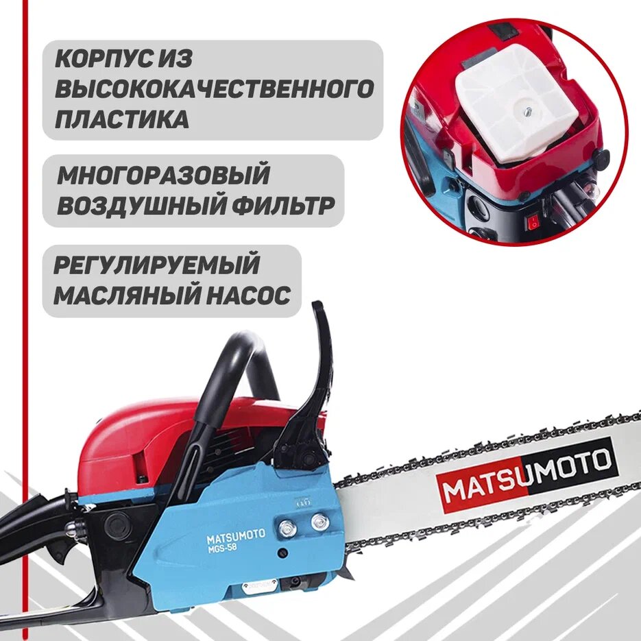 Бензиновая пила MATSUMOTO MGS-58 4500 Вт/4.8 л.с красный/синий