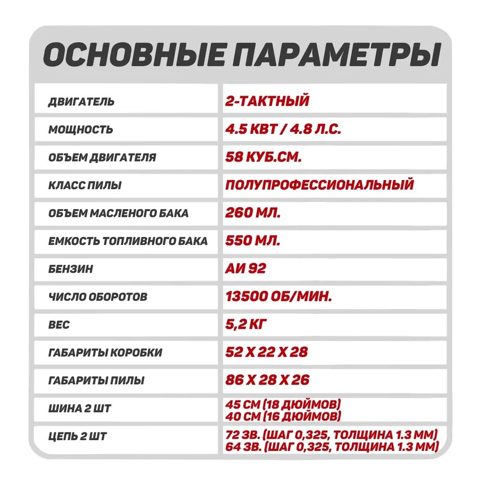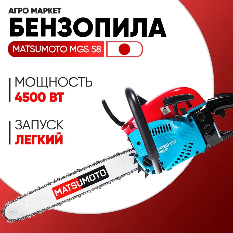 Бензопила/пила цепная бензиновая Matsumoto MGS-58/4500вт, 2шины+2цепи,масло интересное: