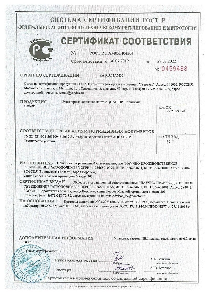 | Дополнительная информация | Шаг капельниц (эмиттеров) 10 см. Водовылив (капельный полив) 1,6 литра в час |
