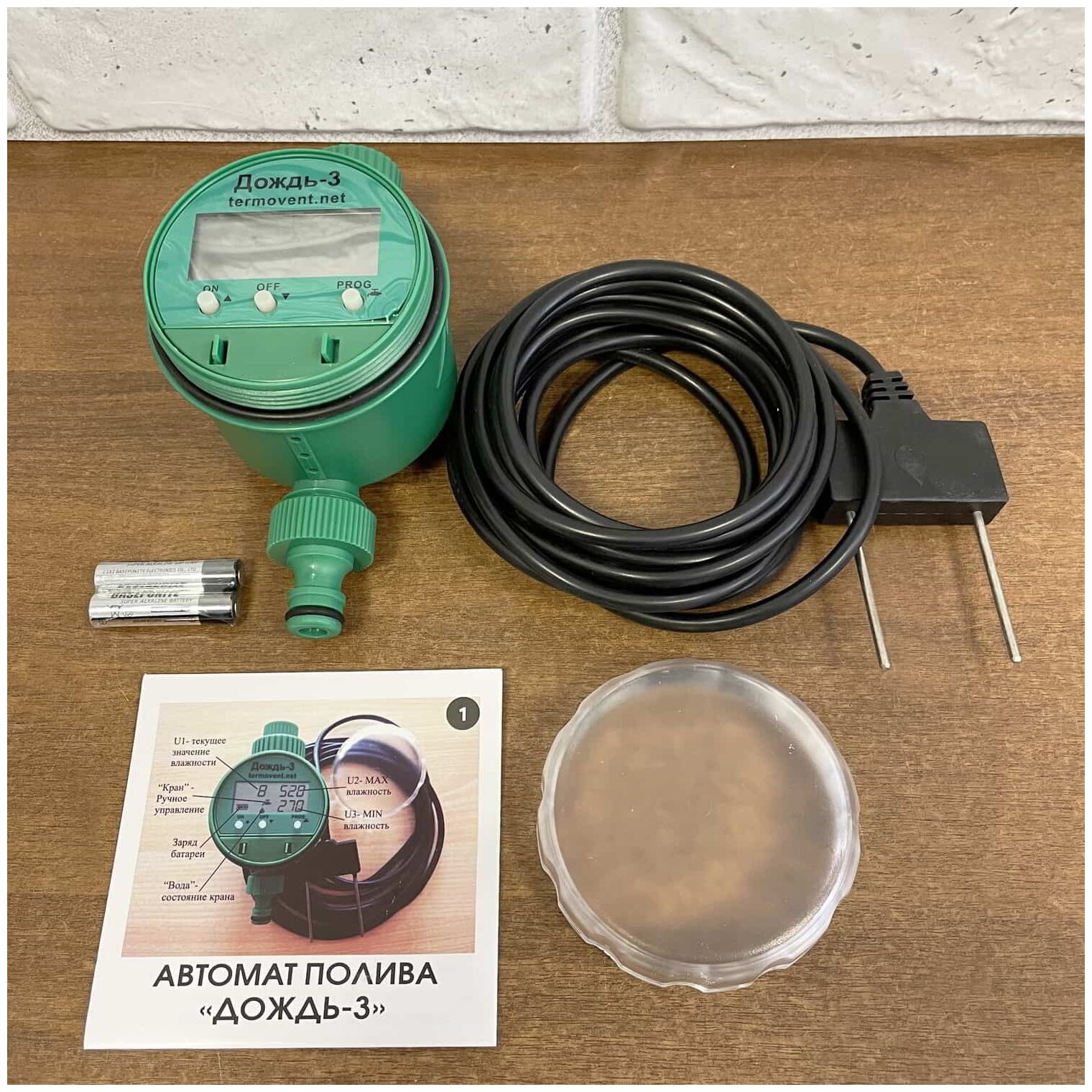 Автомат полива Дождь-3 (3Б) / С датчиком влажности почвы / ЖК-дисплей / Шаровой исполнительный механизм интересное: