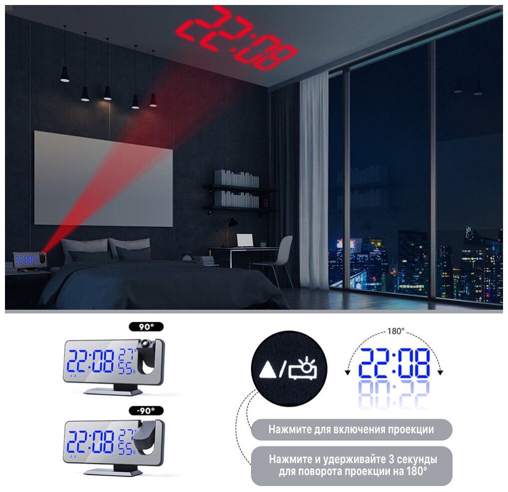 Многофункциональные зеркальные часы с проекцией и радио интересное: