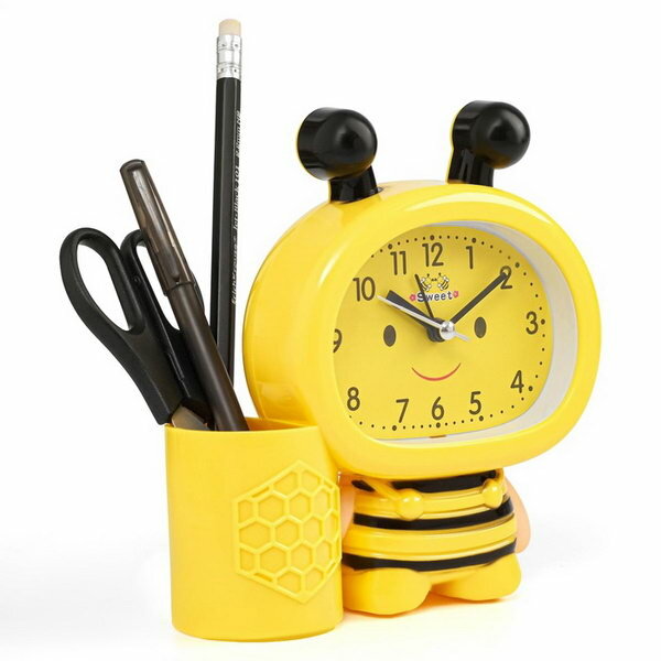 Будильник "Пчела", с карандашницей, дискретный ход, d-9 см, 14.5 x 14 см, желтый интересное: