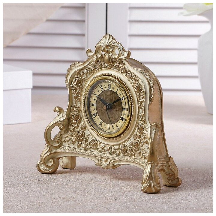 Часы настольные "Каминные", цвет белый с позолотой, 21х19х6.5 см интересное: