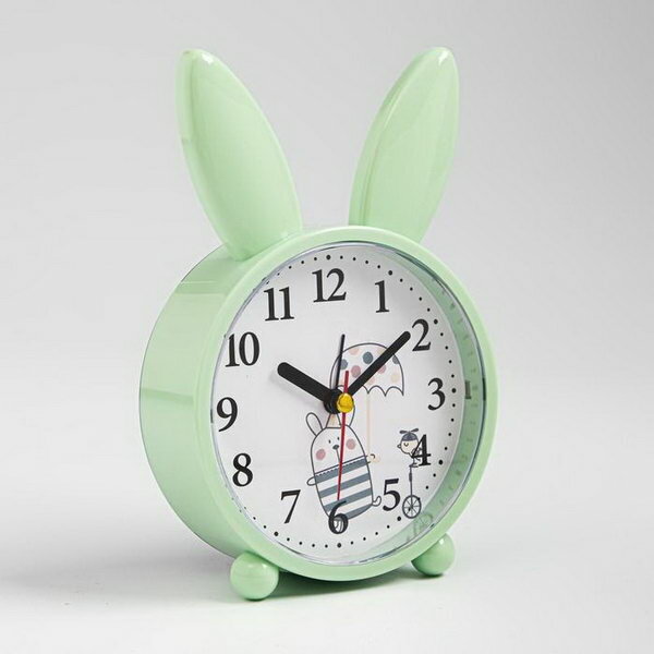 Будильник "Зайчик", плавный ход, d-10 см, 16.5 х 11 см, зеленый (1 шт.)
