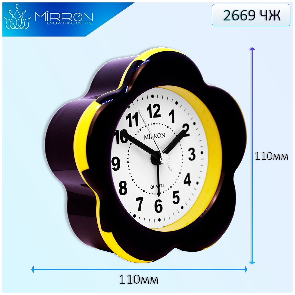 Настольный будильник в форме цветка MIRRON 3303 ЧЖ/Часы в спальню/Часы для детской/Будильник цветок/Чёрно-жёлтый цвет