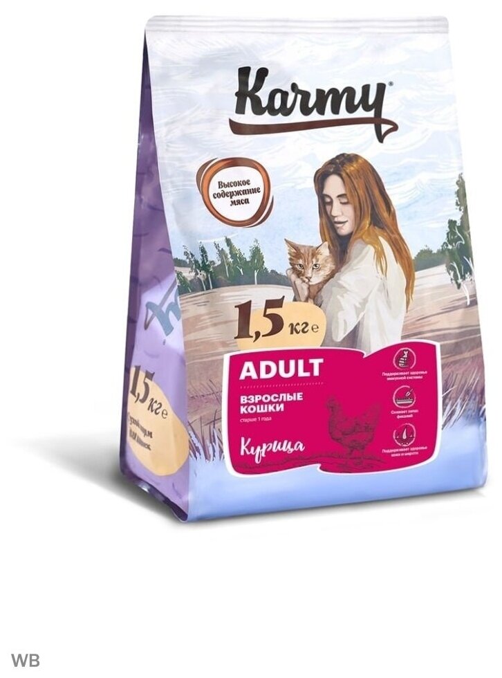 Karmy Сухой корм для взрослых кошек старше 1 года с курицей 73303 | Karmy Adult 1,5 кг 41965 (2 шт)