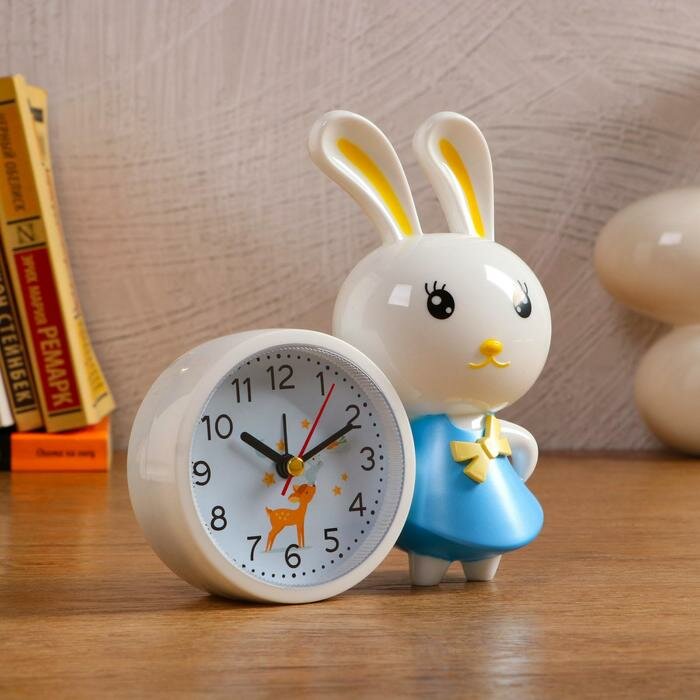 Будильник настольный "Зайка", d=8.7 см, 1 АА, плавный ход, сиреневый интересное: