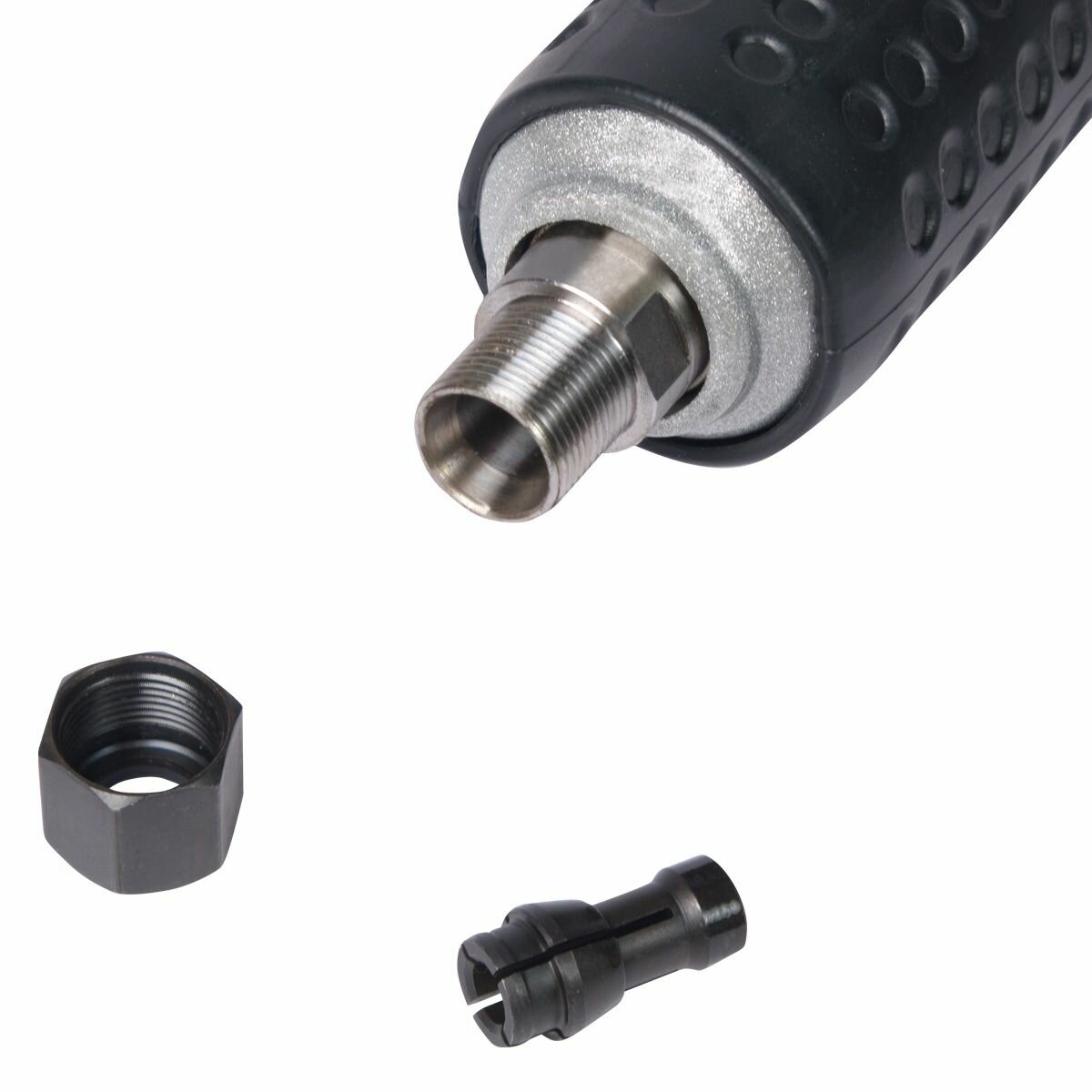 | Минусы: | Некачественная цанга - заклинивается в зажимной гайке. Чтобы сменить насадку необходимо приоткрутить гайку, а потом ударить по насадке, как бы забивая, после чего выходит легко.