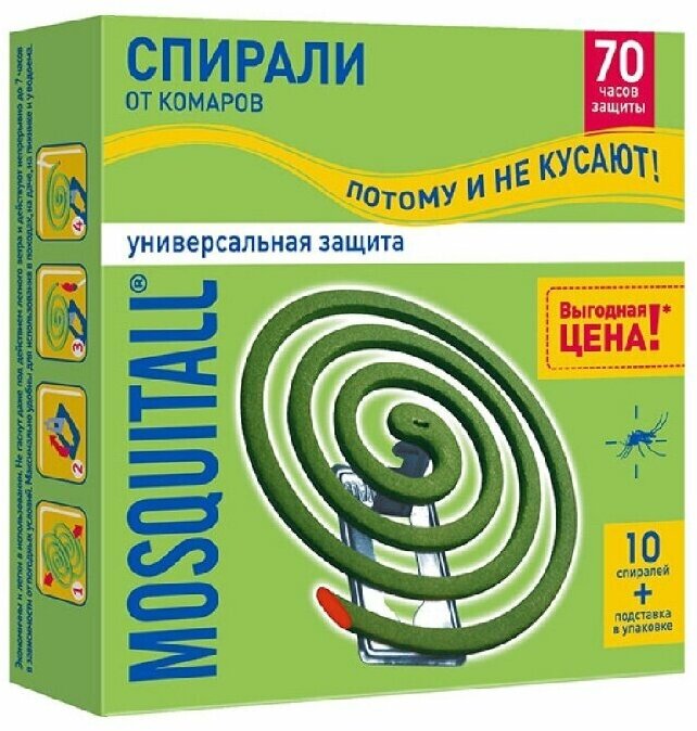 MOSQUITALL Спирали Mosquitall универсальная защита от комаров на 70 часов 10 шт интересное: