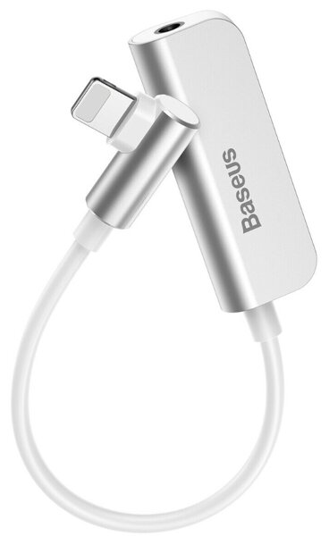 Аудио адаптер BASEUS L50S Male 2-in-1, Lightning to AUX 3.5mm + Lightning для зарядки, Белый+Серебристый