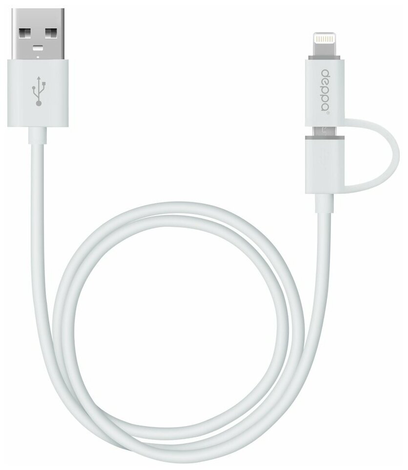 Кабель Deppa 2 в 1 USB - Micro USB/Lightning 1.2м Black (арт.72204)