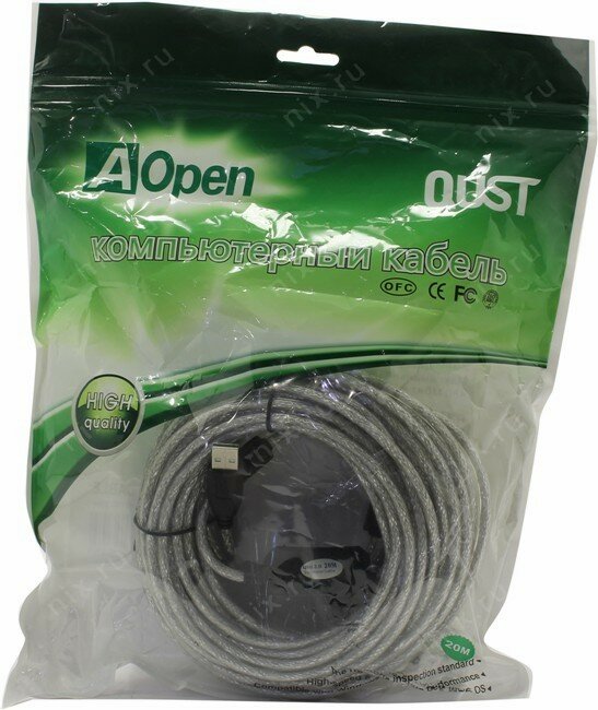 Кабель удлинительный AM-AF 20м Aopen ACU823-20M активный с усилителем USB 2.0