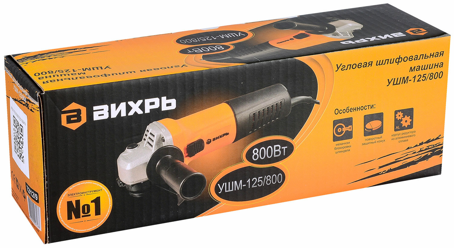 УШМ вихрь УШМ-125/800, 800 Вт, 125 мм, без аккумулятора