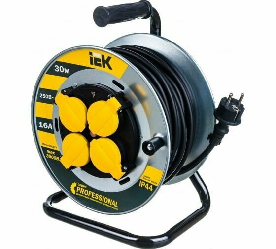 Iek удлинители силовые WKP16-16-04-30-44 Катушка УК30 на мет с т з 4 места 2 Р + P Е 30м КГ 3х1,5мм2 IP44 "Professional"
