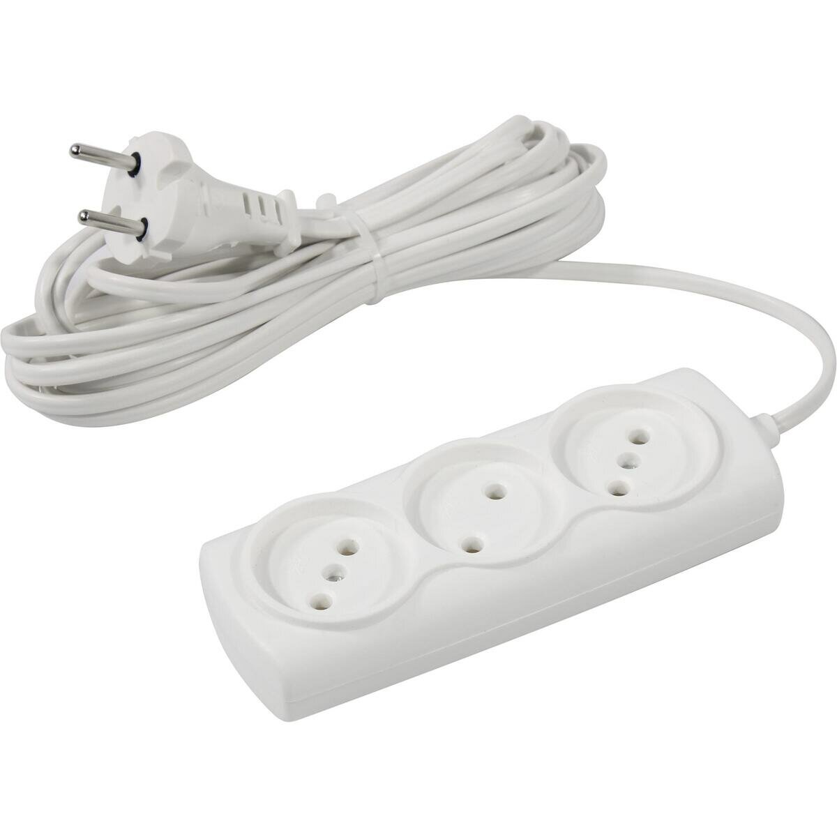 Удлинитель 3 розетки, 5 м, 6 А, 1300 Вт, ШВВП 2х0.5 мм2, без з/к, белый 5350219