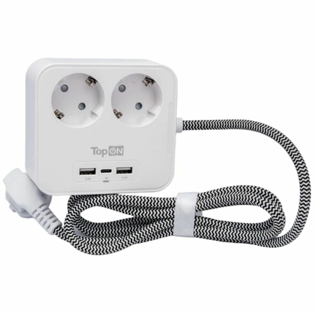 Сетевой фильтр TopON TOP-PWS2 на 2 розетки, с 2 USB-A и USB-C, 4000W, 1.5 м, белый