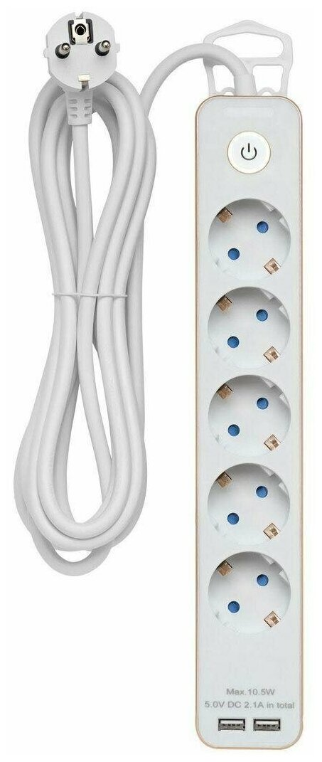 Удлинитель DUWI 32070 8 Supraguard (5гн. 3м. 2xUSB) белый/золото