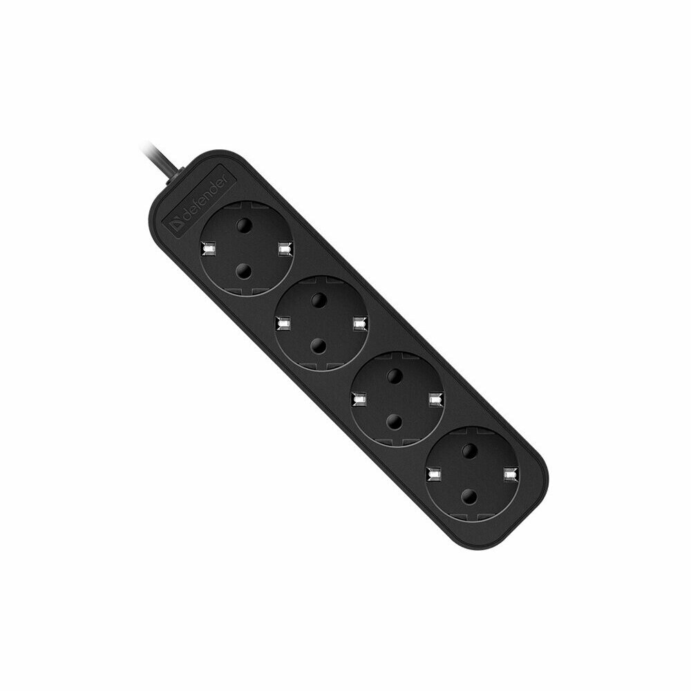 Удлинитель сетевой Defender 4 розетки с заземлением , 1.8 метра , черный