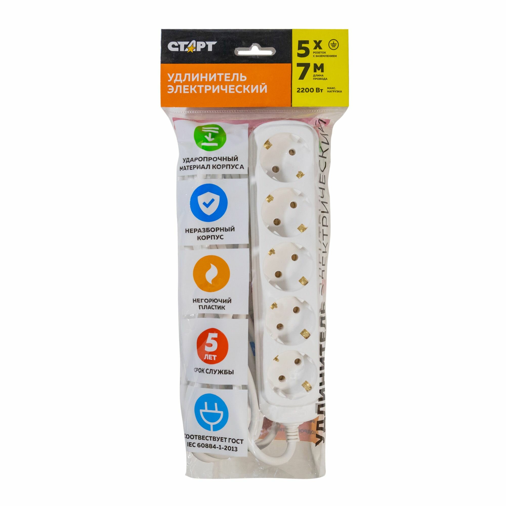 Сетевой удлинитель старт, 5 розеток, 7 м. (ПВС 3*х0.75 мм), 10А (с заземлением) интересное: