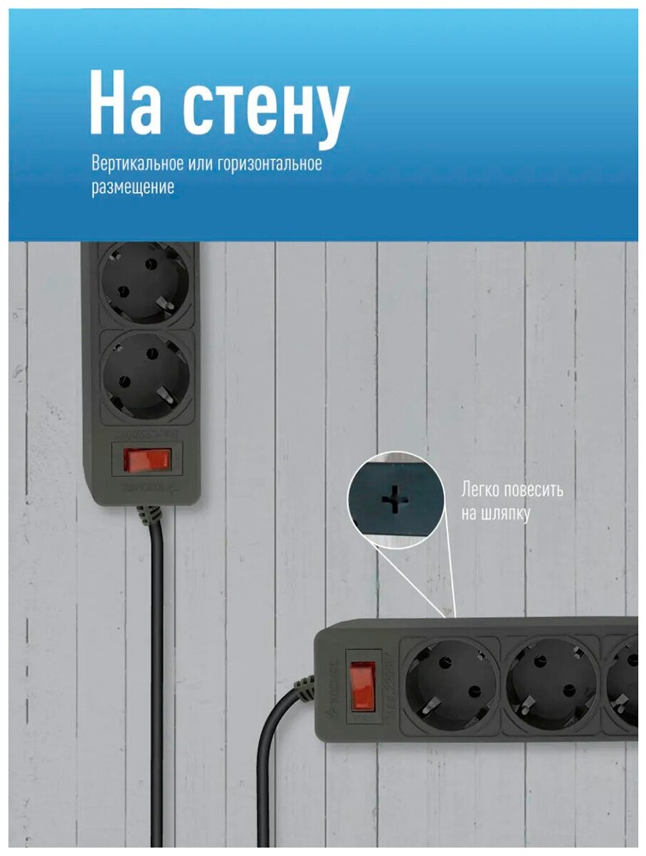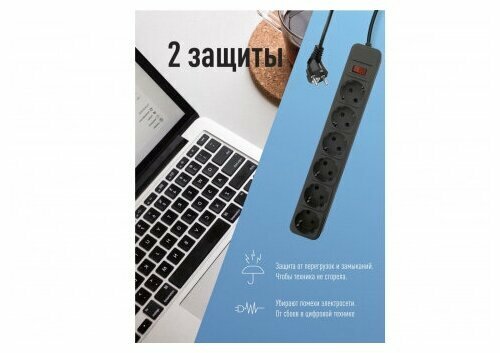 Сетевой фильтр Космос Электро Космос 6х5м с заземл. 16А IP20 3.5кВт с пред. 3х1 индик. сети, черный, FKsm5m-6g(B)16A
