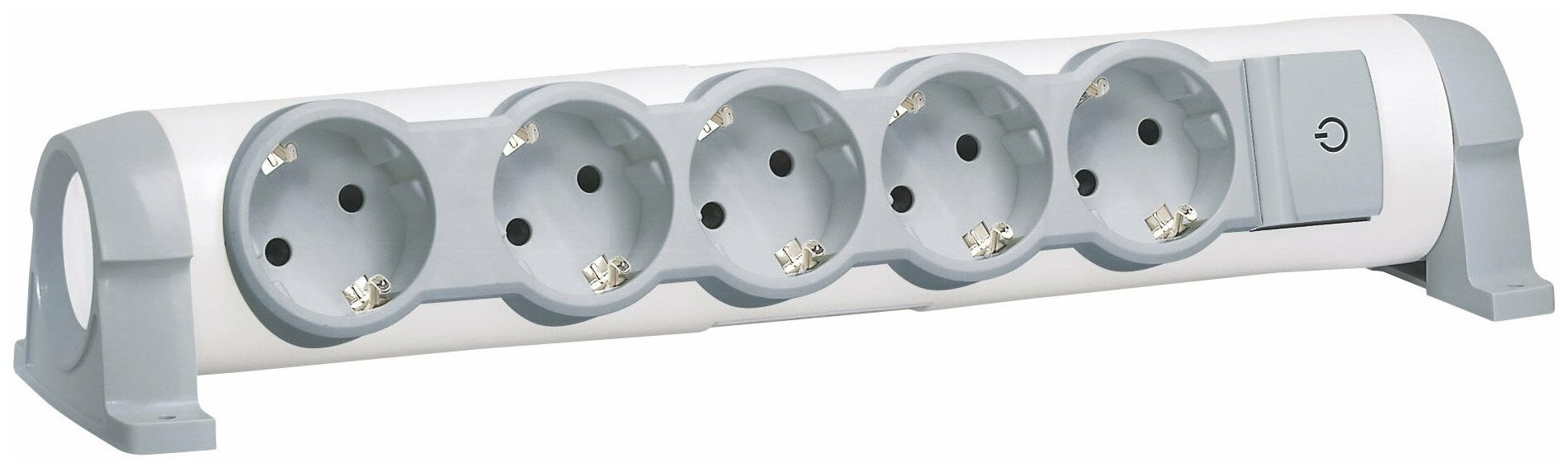 Колодка удлинителя 5 гнезд с выключателем с заземлением белый/серый поворотный блок (Legrand), арт. 694634