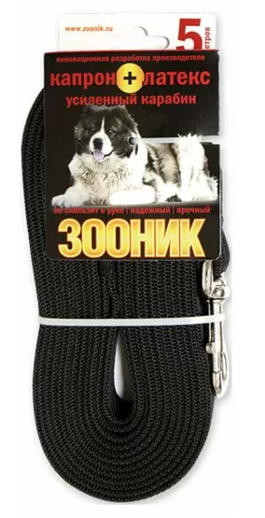 Купить Поводок для собак 25 мм капроновый с двойной латексной нитью и усиленным карабином черный 5 м Зооник (1 шт)