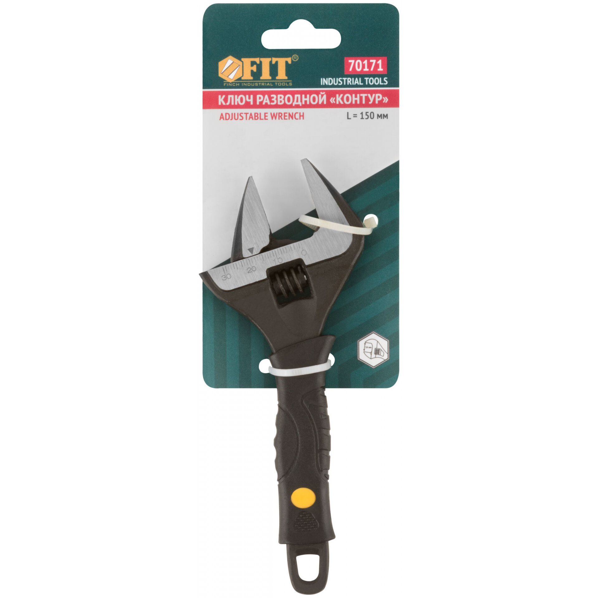 Ключ разводной "Контур", узкие губки, шкала, экстра увелич.захват, ПВХ накладка на ручку 150 мм ( 34 мм ), FIT 70171 (1 шт.)