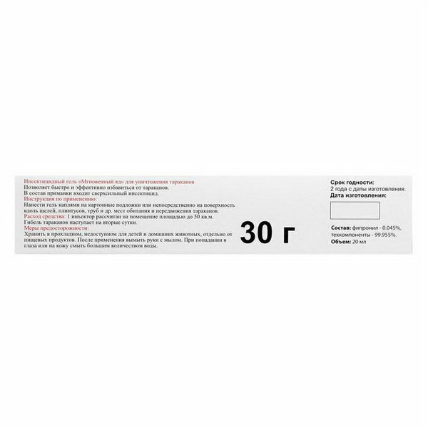 Гель Дохлокс от тараканов "Сгинь зараза!", 30 г, 20 мл
