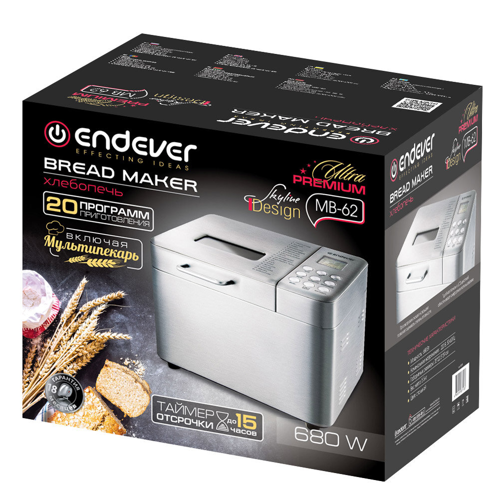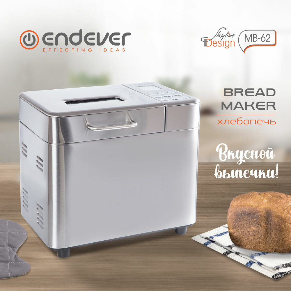 Хлебопечка с замесом теста Endever MB-62 / 19 автоматических программ + мультипекарь / выпечка 500/750/1000 грамм
