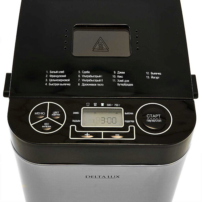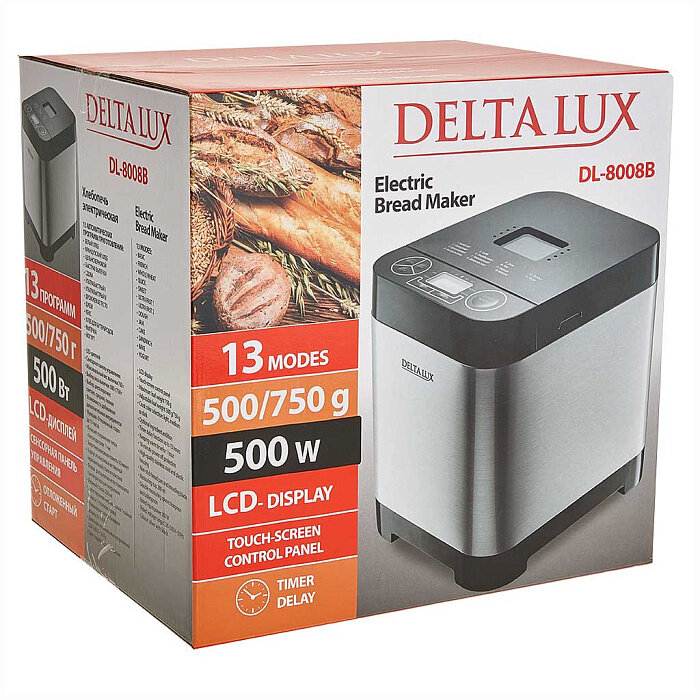 Хлебопечь Delta LUX DL-8008В, вес бухан.750гр, 13 программ, серебристый с черным