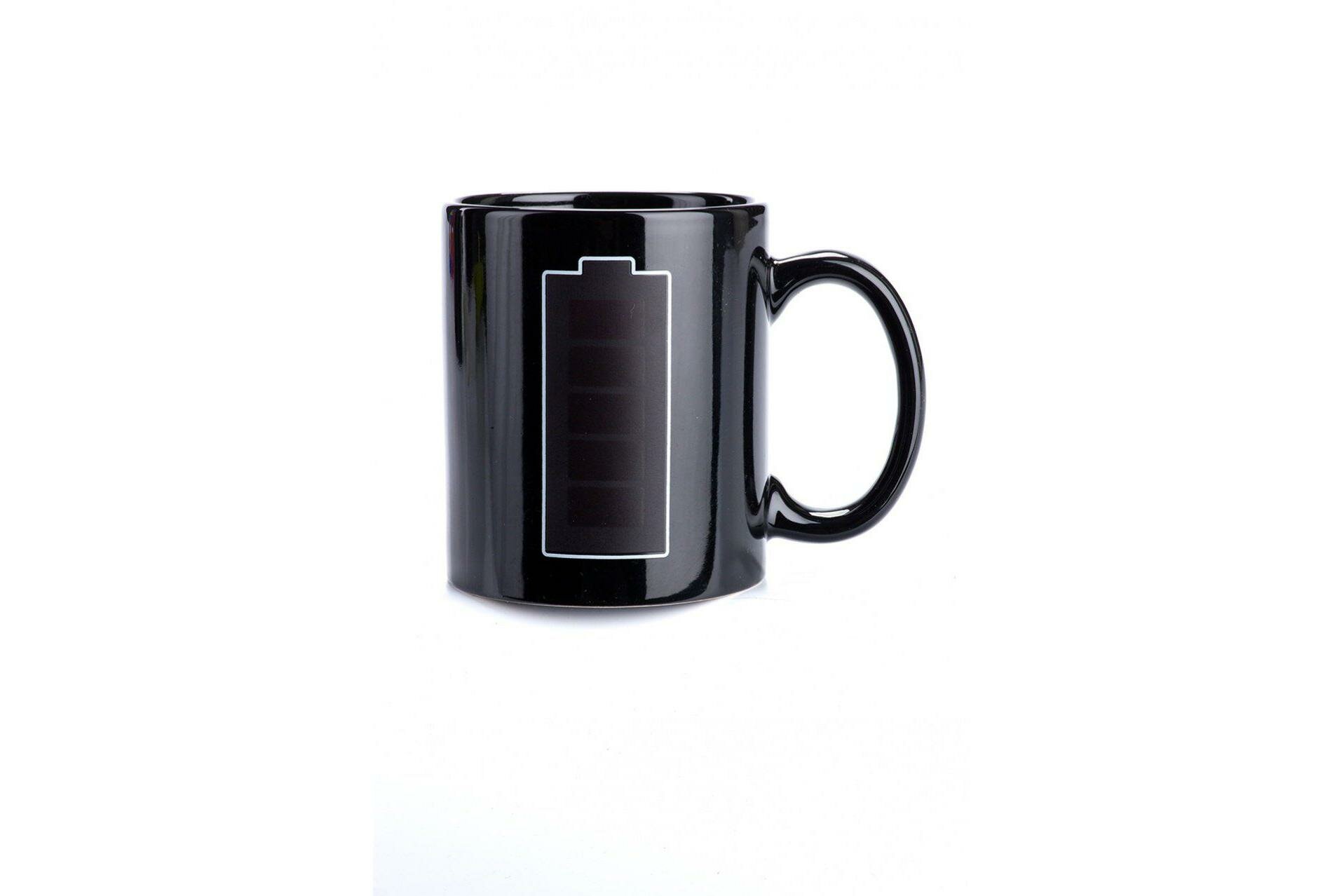 Кружка для чая и кофе хамелеон "Батарейка" BRADEX, керамическая, черная, 330 мл, 1 шт