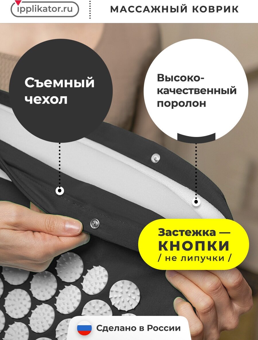 Аппликатор Кузнецова: Массажный набор акупунктурный игольчатый коврик + валик, черный. Сделано в России! интересное: