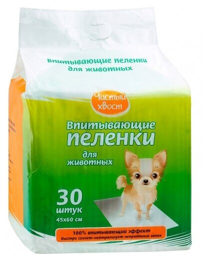 Чистый хвост пеленки впитывающие для животных, 60 х 45 см (30 шт)