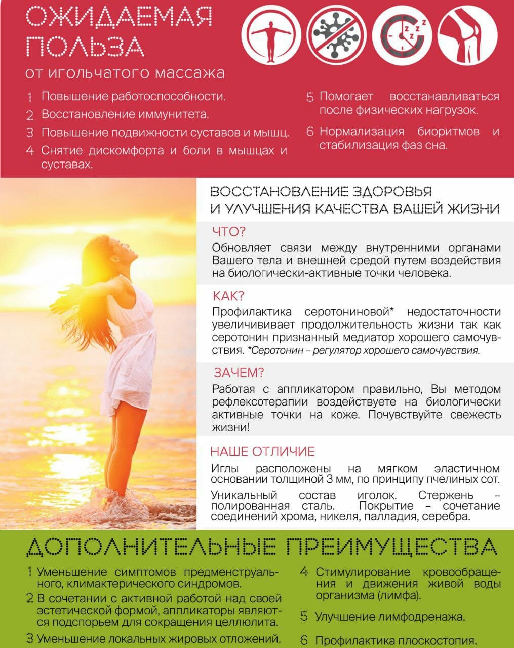 | Вид массажа | разогревающий / рефлекторный / акупунктурный |