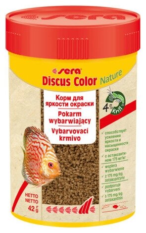 Корм сухой для рыб для Sera Discus Color Red Nature для яркости окраса желтых и красных дискусов, в гранулах, 45 гр