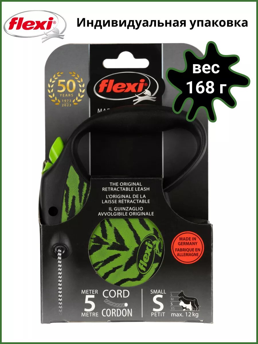 Купить Поводок-рулетка Flexi Safari cord S 5m 12 kg green Tiger