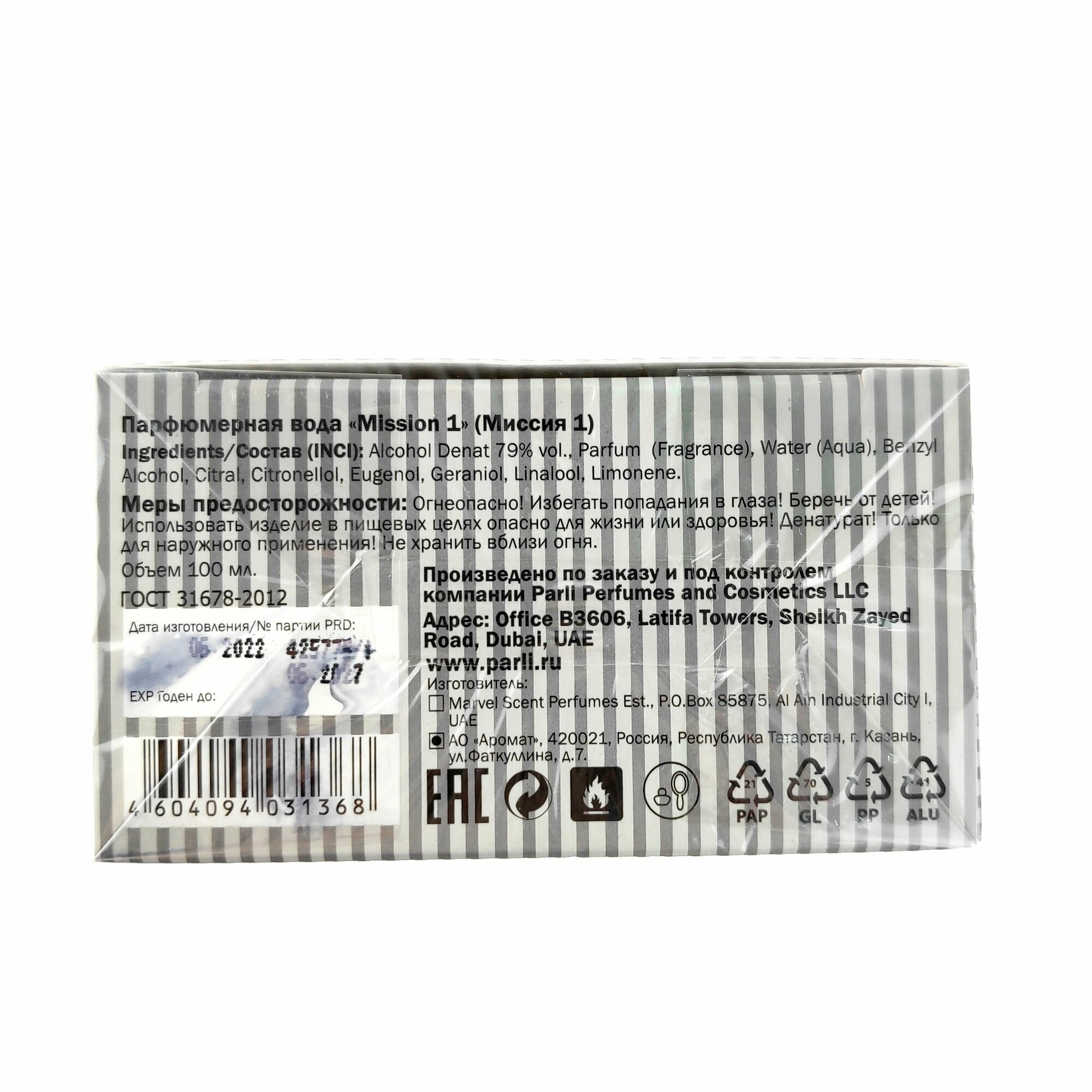 Parli парфюмерная вода Mission 1, 100 мл интересное: