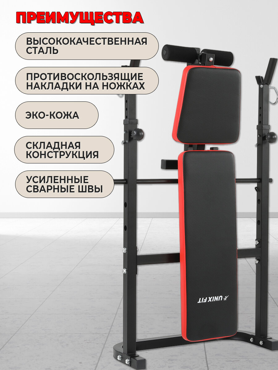 Скамья силовая со стойками UNIX Fit BENCH 125 складная, нагрузка на скамью до 240 кг UNIXFIT