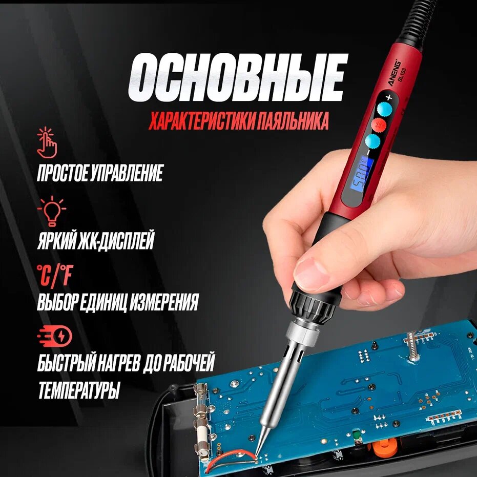 Паяльник с регулировкой температурой ANENG SL101 интересное: