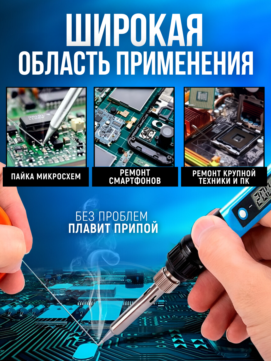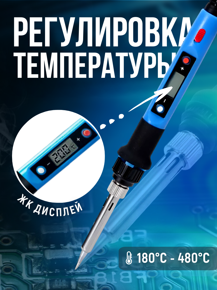 Электрический паяльник с регулировкой температуры и дисплеем 80 Вт, синий интересное: