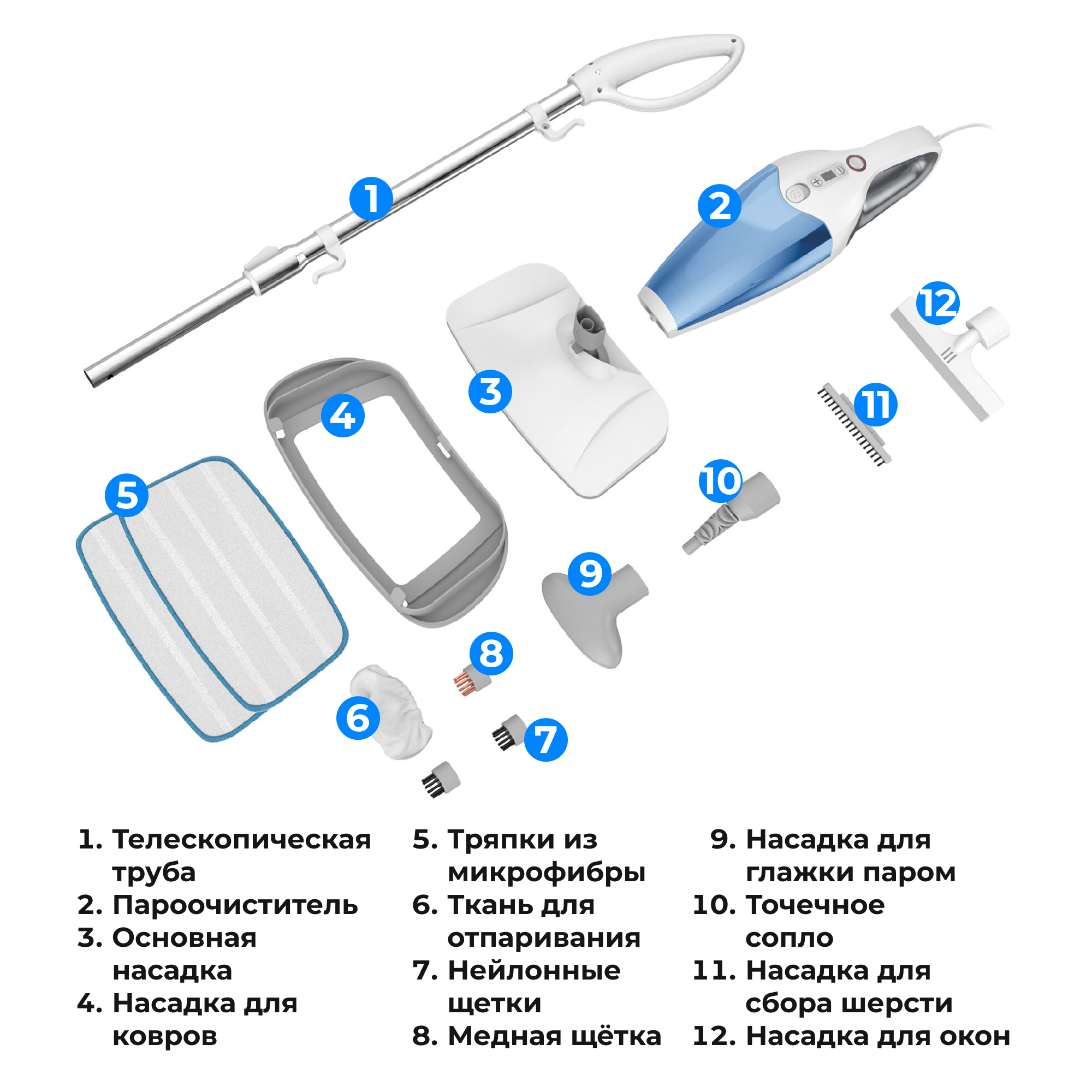 Паровая швабра Futula Steam Mop SM12, мощность 1500 Вт, 9 сменных насадок