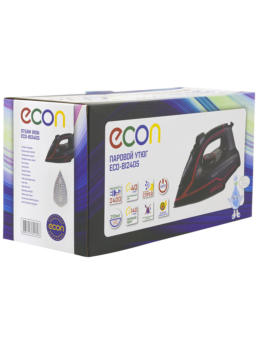 Утюг ECON ECO-BI2405 черно/красный, 2400 Вт, керамика, паровой удар, вертикальный пар, самоочистка