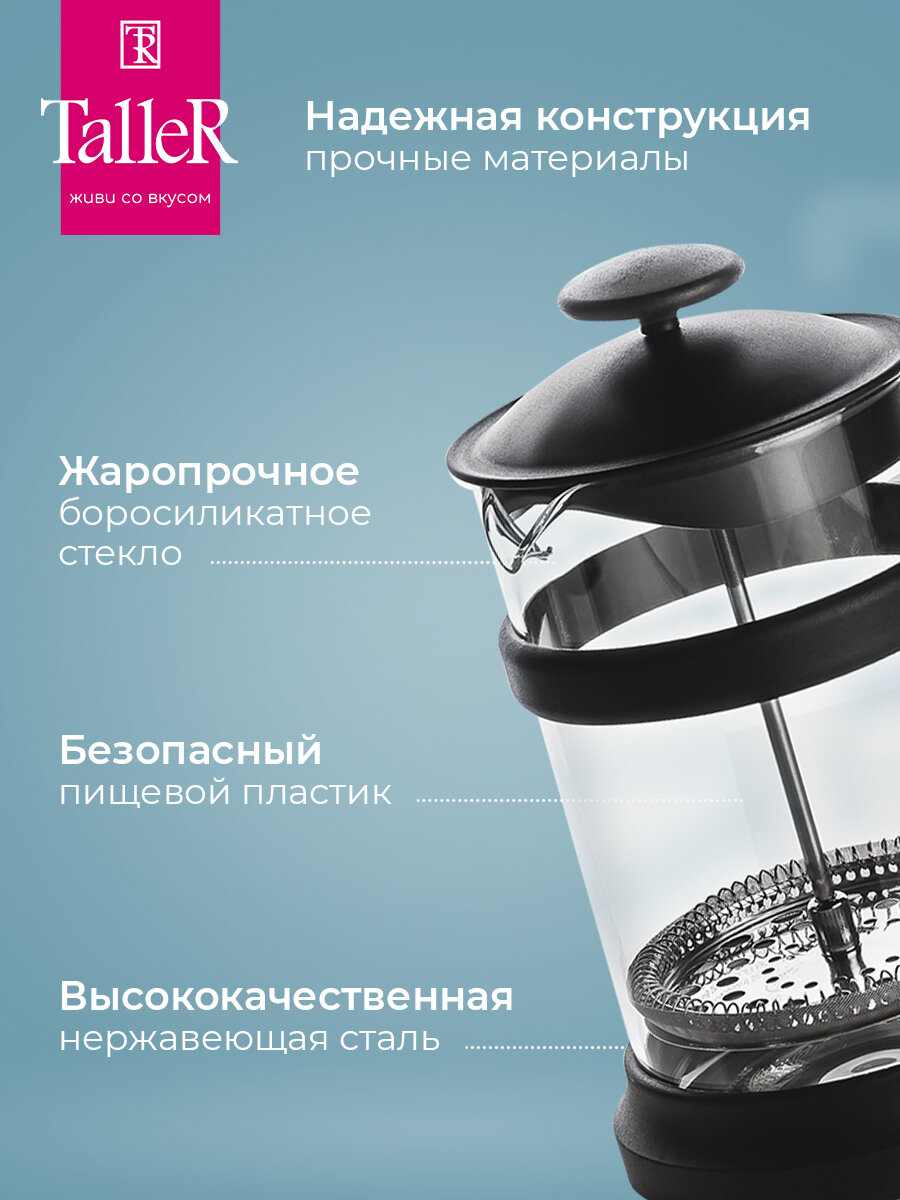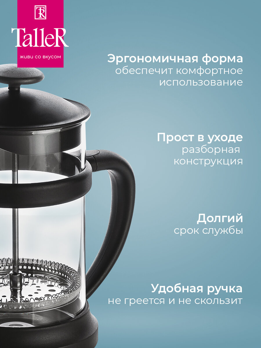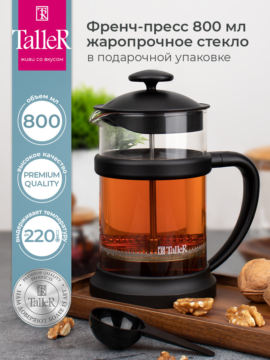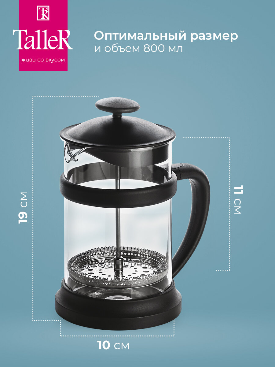 Френч-пресс TALLER 32317-TR, 800 мл, боросиликатное стекло, пластик