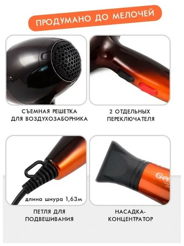 | Плюсы: | Поток воздуха сильный сушит быстро волосы не повреждает. |