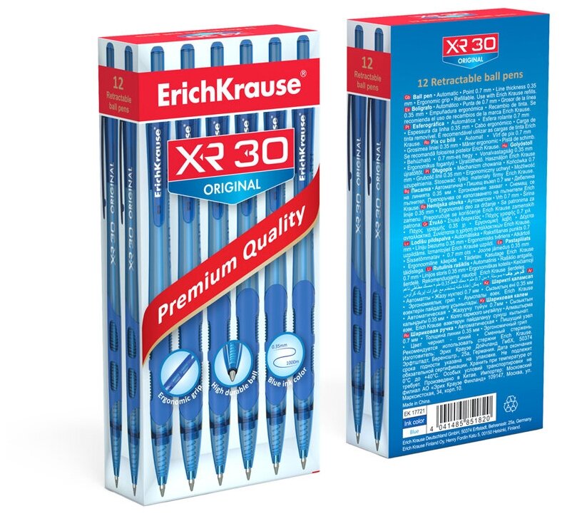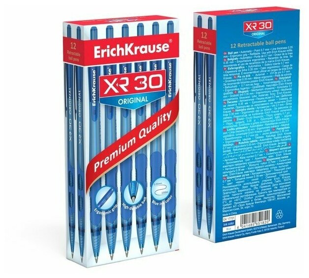 ErichKrause набор шариковых ручек XR-30 Original, 0.7 мм (17721), синий цвет чернил, 12 шт.