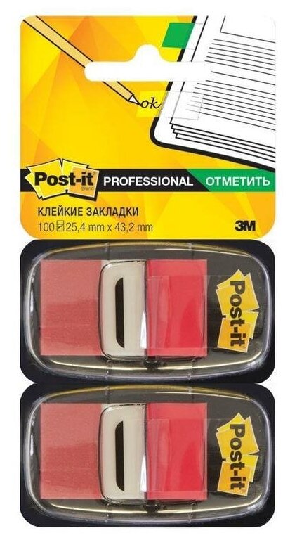 Клейкие закладки пластиковые 3M Post-it Professional, красный по 100л., 25мм, диспенсеры (680-RD2)