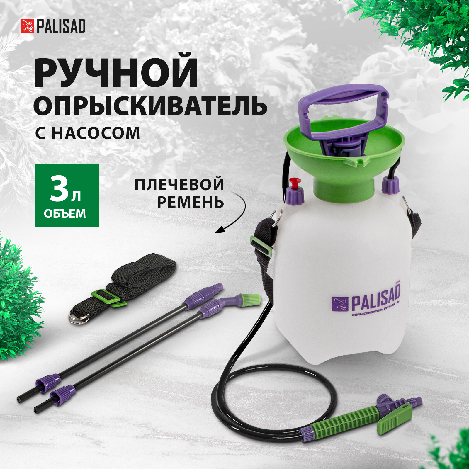 Опрыскиватель Palisad 64743 3л, ручной, с горловиной, насосом, шлангом, разбрызгивателем .