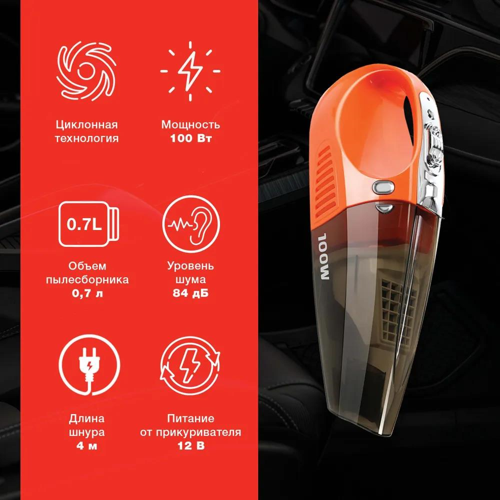 Автомобильный пылесос Starwind "Cyclone", CV-100, черно-оранжевый, 100 Вт, питание 12 В, 0,7 л