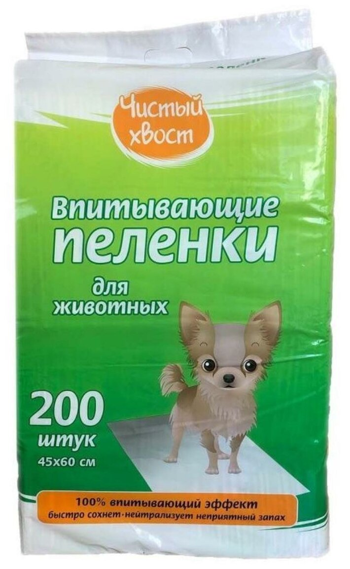 Чистый хвост 200 шт 60х45 см пеленки для животных впитывающие интересное: